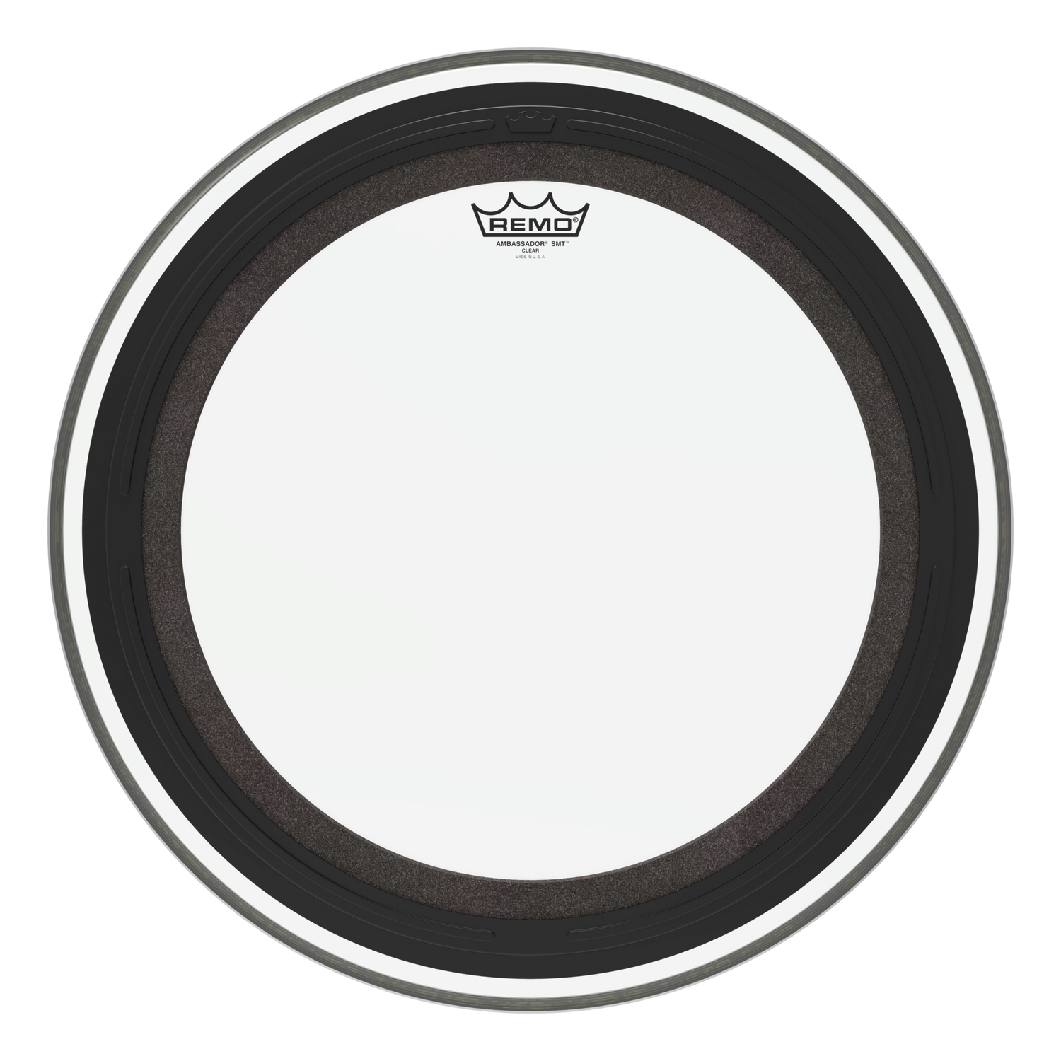The Ambassador® SMT™ Clear bass drumhead is a pre-muffled design featuring Sub Muffl® Technology.