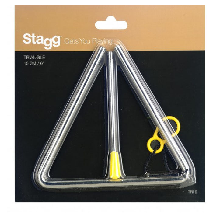 A great value metal triangle by Stagg. Measuring at 6 inches this triangle produces a resonant, high pitch and loud chime sound when played with included beater.