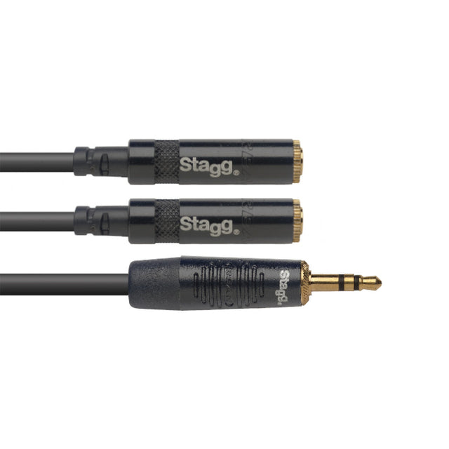 Stagg N-Series Y-Adapter Cable - 10cm Stereo Mini Jack to 2 x Mini Jack Sockets